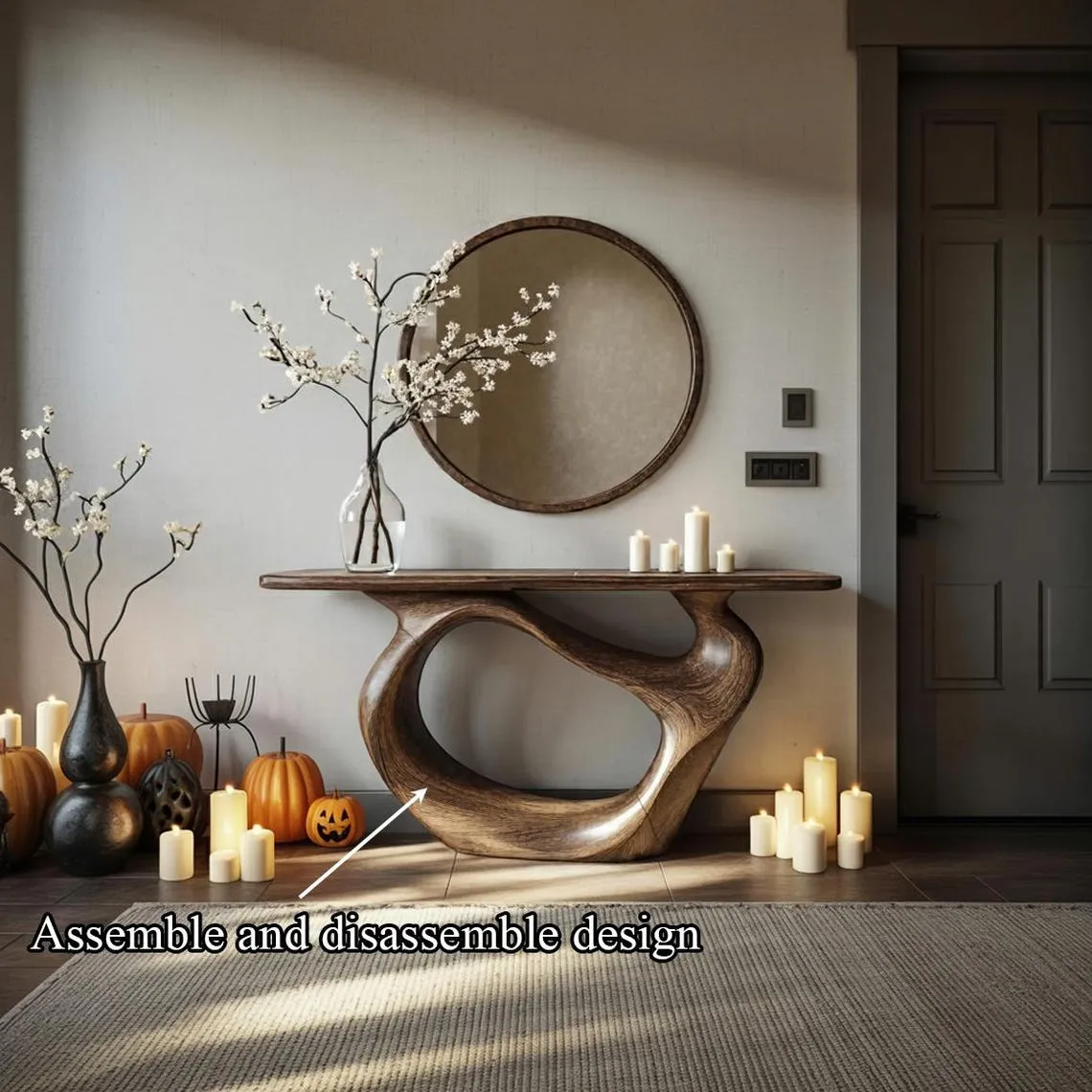 This live-edge console preserves the natural outline of the tree along one or both edges to bring subtle texture to narrow spaces. The top is sanded smooth for comfortable use while keeping unique curves and figure visible. A stable base supports everyday tasks in entryways or halls. Surfaces are sanded smooth and finished with indoor furniture-grade coatings. Because real wood is a natural material, tone and grain will vary; knots or small character marks may be present and are part of the piece’s identity. Minor seasonal movement can occur with changes in humidity and does not affect standard function. What’s included: table top and base components with standard hardware when applicable.